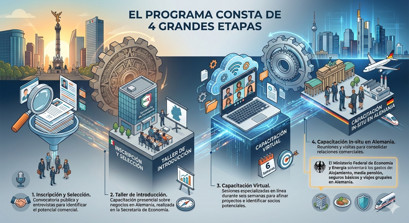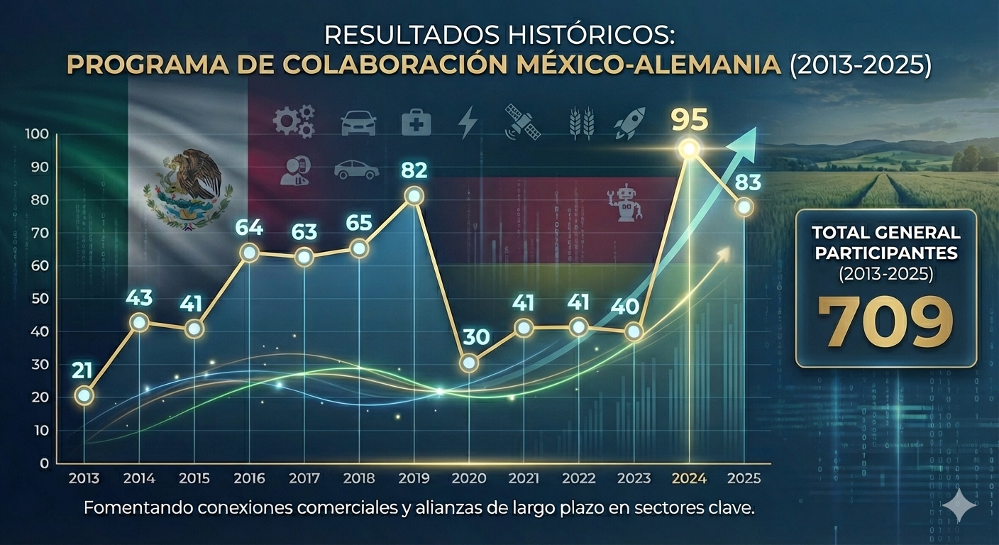 Su objetivo principal es fomentar conexiones comerciales y alianzas de largo plazo entre empresas mexicanas y el mercado alemán, abarcando sectores como manufactura, automotriz, salud, energía, telecomunicaciones, agroindustria, industria 4.0, aeroespacial, entre otros.